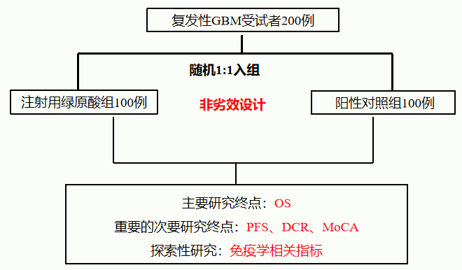 評(píng)估注射用綠原酸組治療復(fù)發(fā)GBM患者的總生存期(OS)非劣于洛莫司汀組。