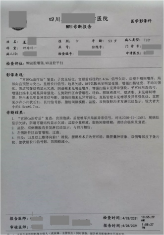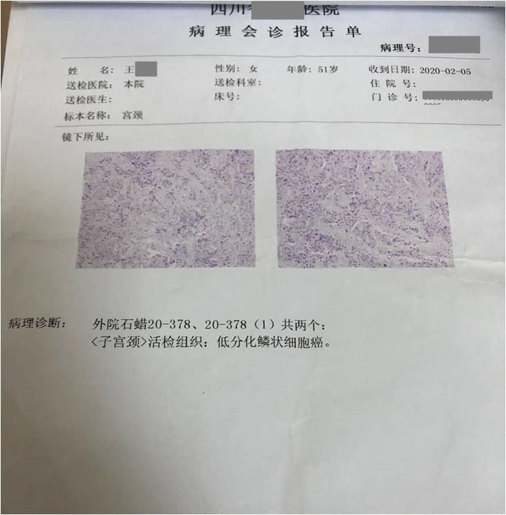 患者用藥前病理診斷:子宮頸低分化鱗狀細(xì)胞癌;隨后進(jìn)行化療、放療,并同步使用注射用綠原酸;聯(lián)合治療8個月后停止化療,開始單獨(dú)使用綠原酸至2022年1月。用藥期間,多次復(fù)查,病情穩(wěn)定向好,無復(fù)發(fā)和轉(zhuǎn)移跡象,血生化指標(biāo)正常,生活狀態(tài)良好。